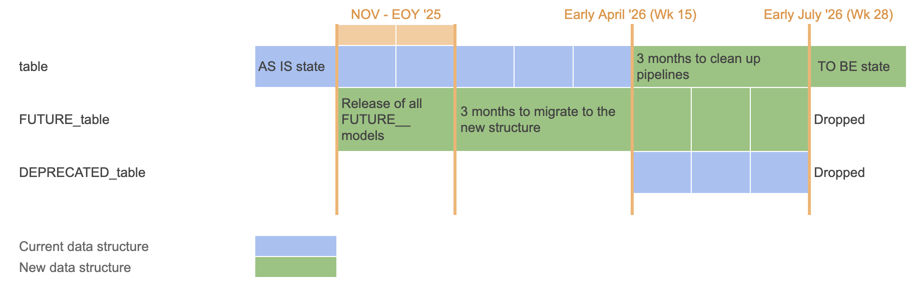 The new tables will be available both with and without the FUTURE__ preposition allowing preparing your codebase for the future stable state.